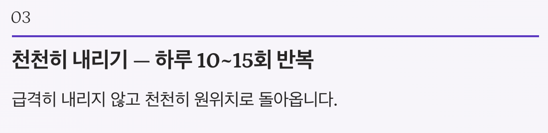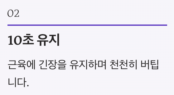 - 10초 유지 후 천천히 내리기