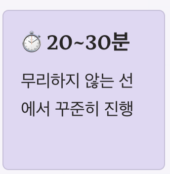 - 20~30분 정도 꾸준히 진행