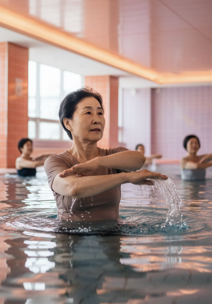 물속에서는 체중 부담이 줄어들기 때문에 관절에 가해지는 압력이 낮아집니다.
