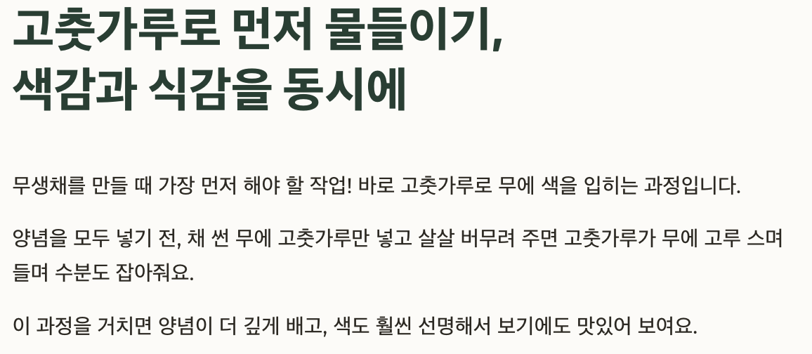 고춧가루로 먼저 물들이기, 색감과 식감을 동시에