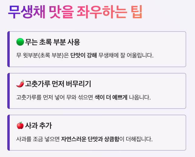 무생채를 더 맛있게 만드는 팁도 있습니다.
