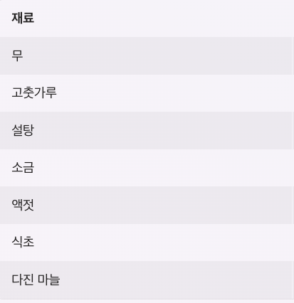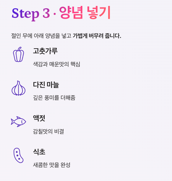 무에 다음 양념을 넣습니다.