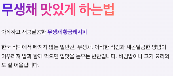특히 비빔밥이나 고기 요리와도 잘 어울리는 반찬이라 많은 분들이 자주 만드는 음식입니다. 하지만 양념 비율이나 무 손질 방법에 따라 맛이 크게 달라질 수 있습니다.