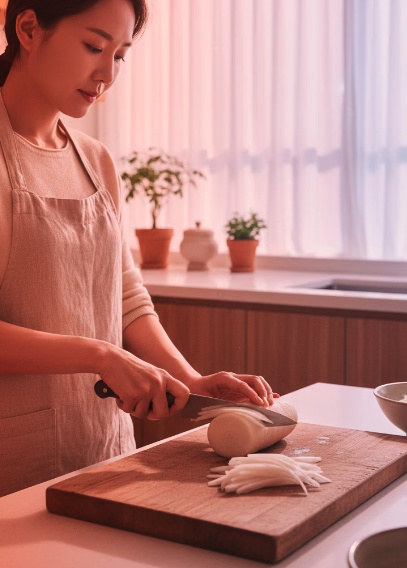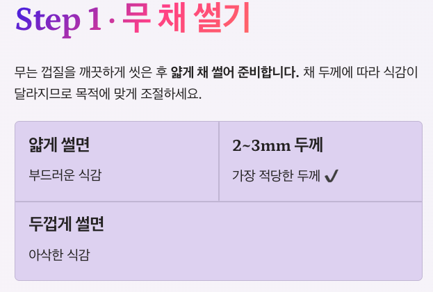 - 두껍게 썰면 아삭한 식감