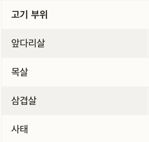 | 목살 | 고소, 쫀득 | 부드러운 식감 |