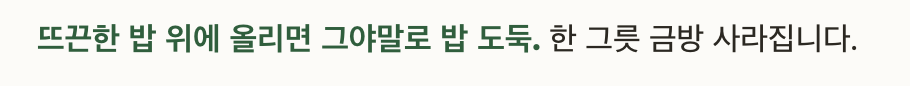 뜨끈한 밥 위에 올리면 그야말로 밥 도둑. 한 그릇 금방 사라져요.