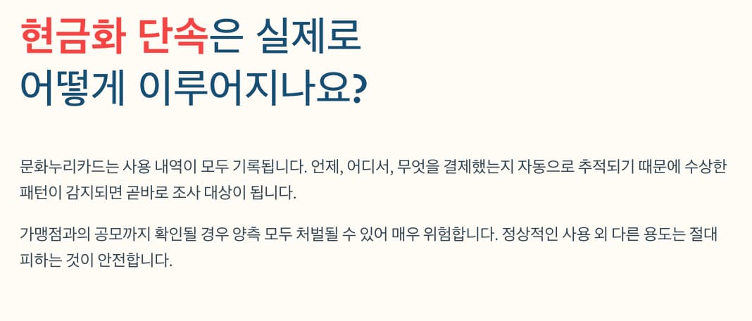 문화누리카드를 현금화하면 어떤 문제가 생기나요?