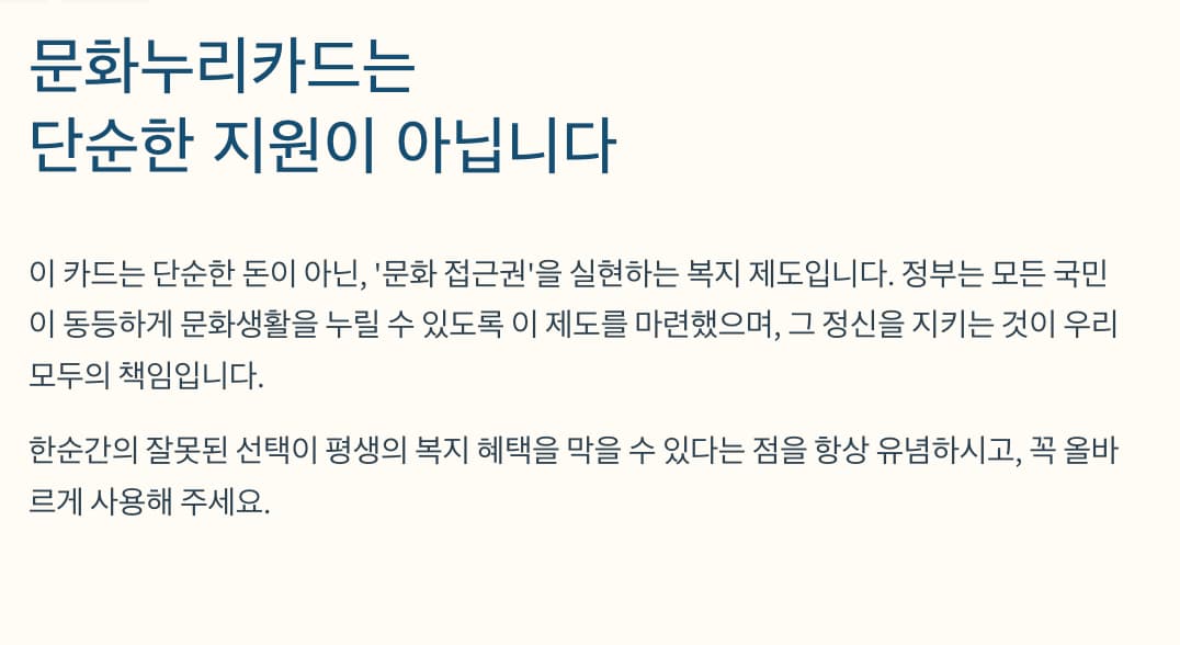 이 카드는 단순한 돈이 아닌, ‘문화 접근권’을 실현하는 복지 제도입니다.