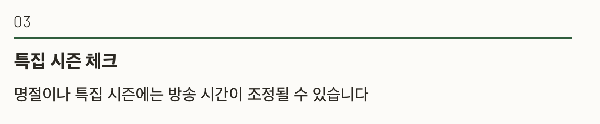 다른 프로그램과 겹치지 않는 시간대에 편성되어 있어서 편하게 시청하기 좋고,