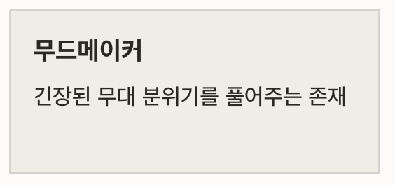 긴장된 무대 분위기를 풀어주고 시청자 입장에서의 반응을 대변해주는 존재죠.
