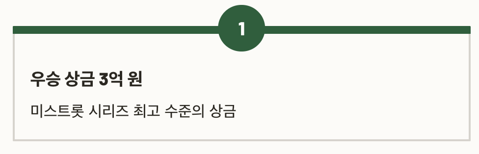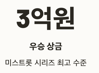 이는 바로 전 시즌인 미스트롯3와 동일한 금액으로, 현재 미스트롯 시리즈 기준 최고 수준의 상금입니다.