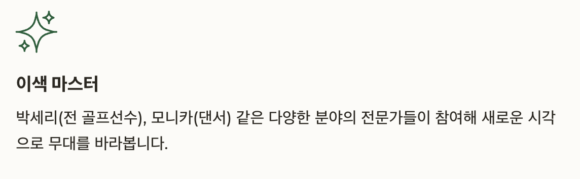 박세리(전 골프선수), 모니카(댄서) 같은 이색 마스터들의 참여도 방송의 다양성과 재미를 더하고 있습니다.