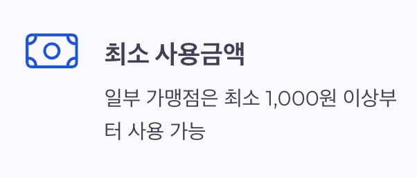 일부 가맹점은 최소 1,000원 이상부터 사용 가능하므로