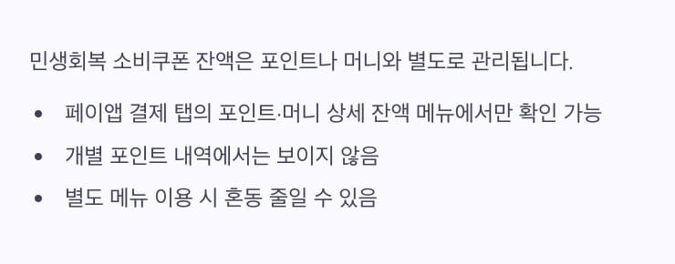 민생지원금 잔액은 포인트나 머니와 별도로 관리됩니다.