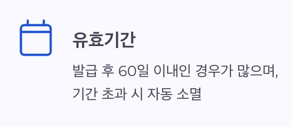 유효기간은 발급 후 60일 이내인 경우가 많으며,