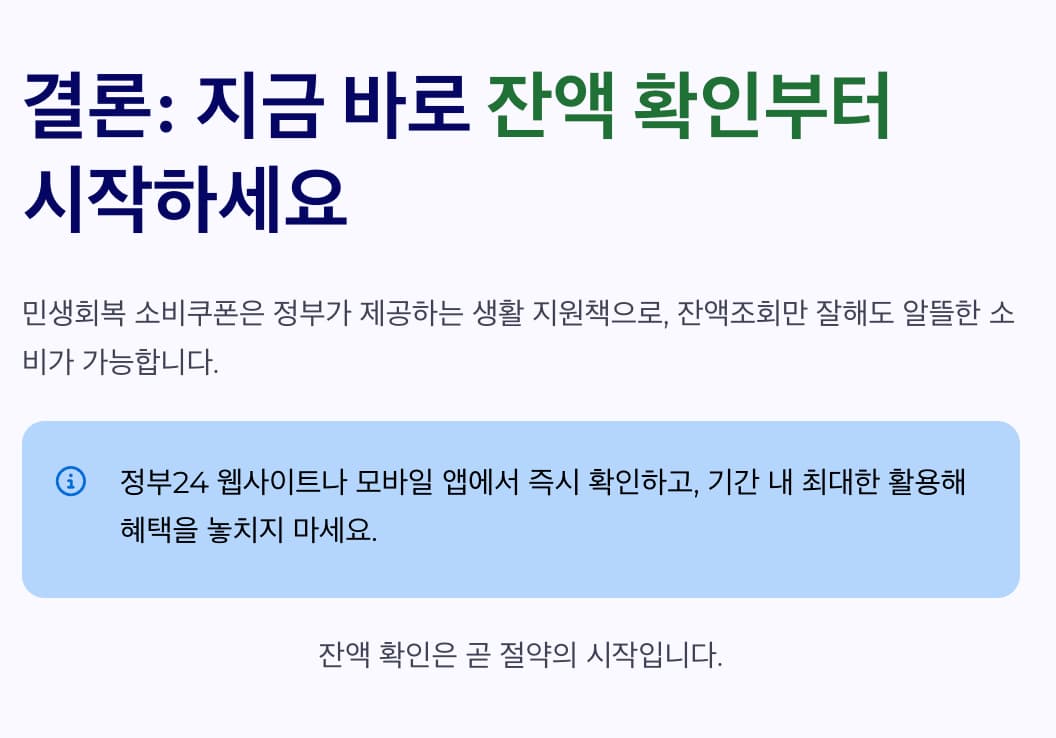 따라서 소비쿠폰 잔액을 확인할 때는 반드시 별도 메뉴를 이용해야 혼동을 줄일 수 있습니다.