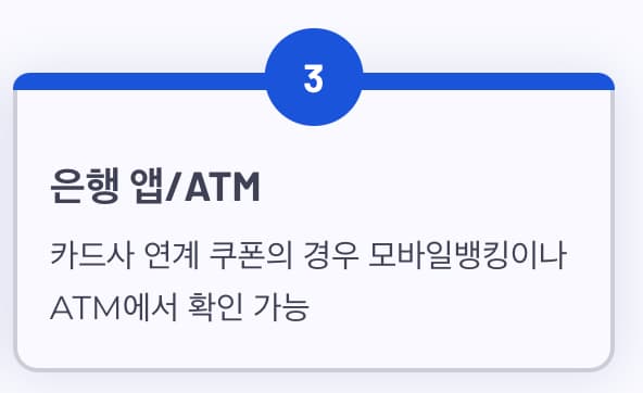 카드사와 연계된 소비쿠폰이라면 모바일뱅킹 메뉴나 ATM에서 잔액조회 항목을 찾아볼 수 있습니다.