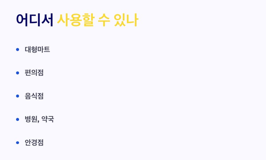 생활 필수 업종에 사용해 실질적인 절약 효과를 높여보세요.