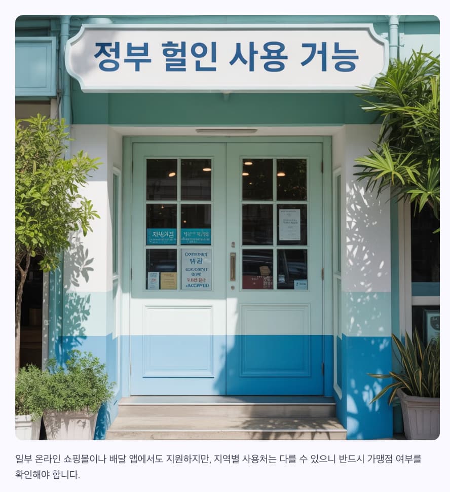 일부 온라인 쇼핑몰이나 배달 앱에서도 지원하지만, 지역별 사용처는 다를 수 있으니 반드시 가맹점 여부를 확인해야 합니다.