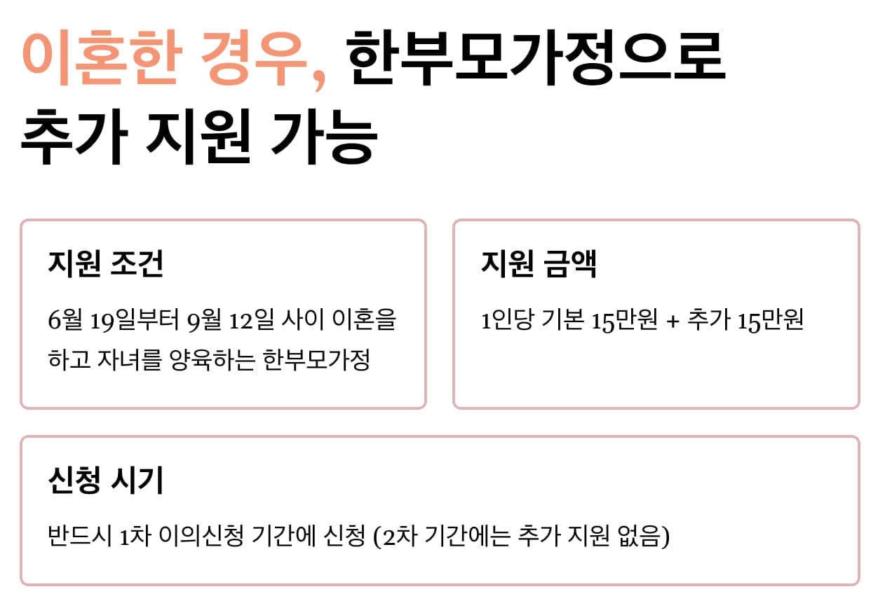| 1차 | 7월 21일 ~ 9월 12일 | 한부모, 신생아, 차상위계층 추가 지원 |