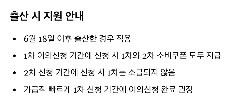 6월 18일 이후 출산을 했다면 1차 이의신청 기간에 신청하면