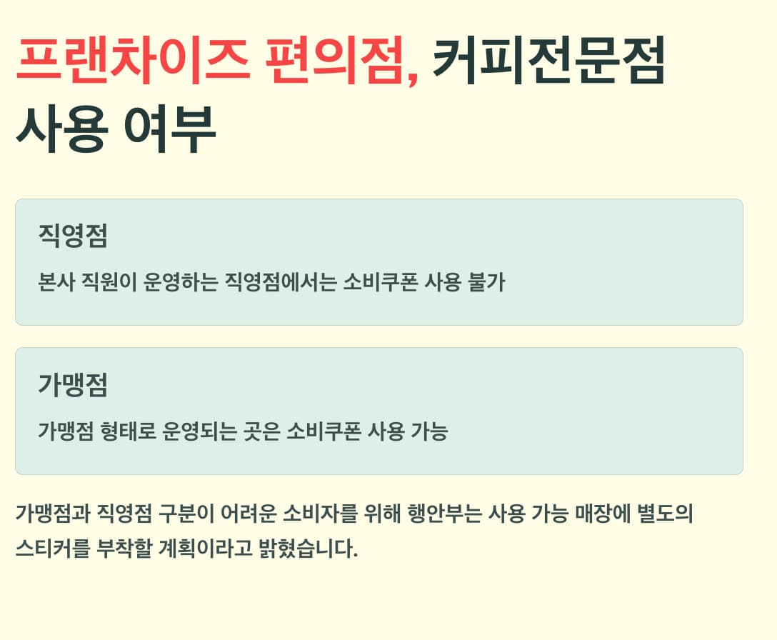 프랜차이즈 편의점, 커피전문점 사용 가능 여부는?
