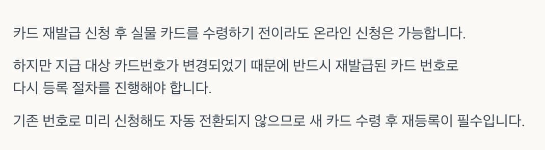 새 카드 수령 후 재등록이 필수입니다.