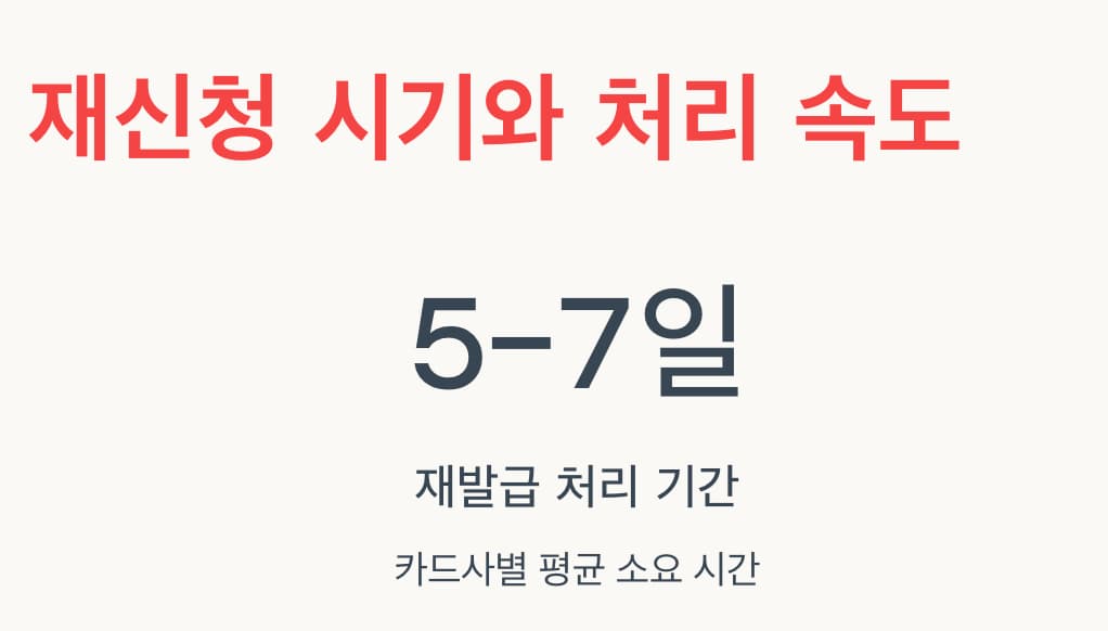 카드사별로 재발급 처리 기간은 평균 5-7일 정도 소요됩니다.