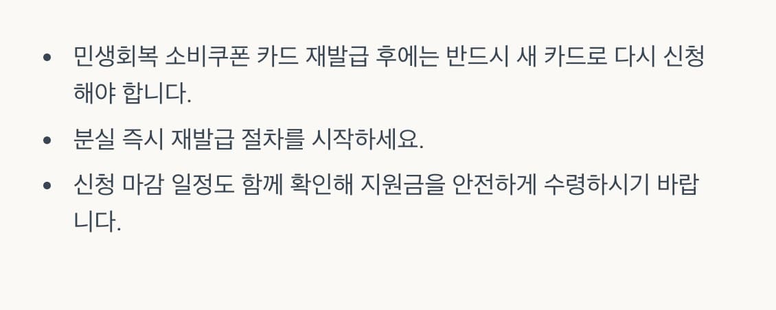 민생회복 소비쿠폰 카드 재발급 후에는 반드시