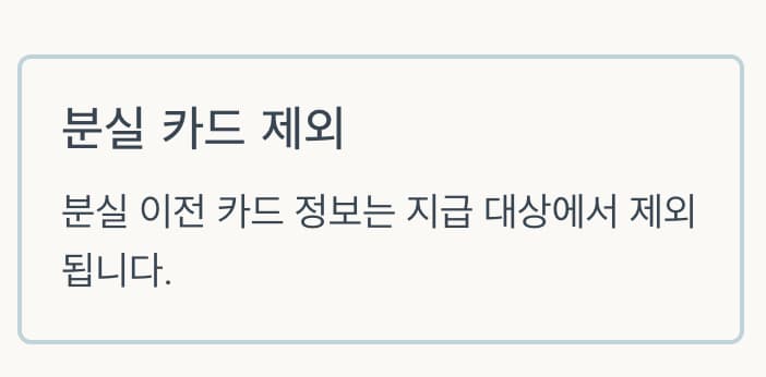 분실 이전 카드 정보는 지급 대상에서 제외되며, 신규 발급 번호로만