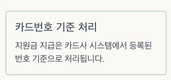 지원금 지급은 카드사 시스템에서 등록된 번호 기준으로 처리됩니다.