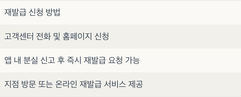 | 하나카드 | 지점 방문 또는 온라인 재발급 서비스 제공 |
