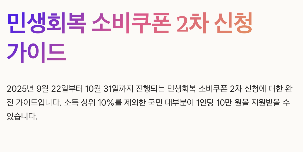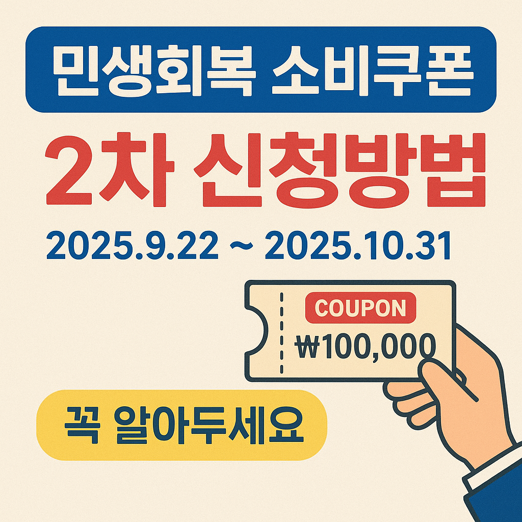 민생회복 소비쿠폰 2차 신청이 9월 22일부터 10월 31일까지 진행됩니다.