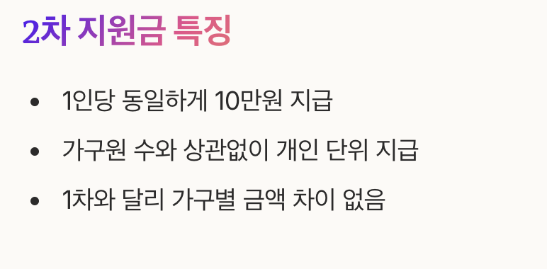 1차 때 가구별로 금액이 달랐던 것과 달리, 이번에는 가구원 수와 상관없이
