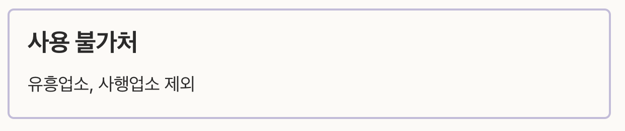 단, 유흥업소와 사행업소를 제외한 소상공인 일반 점포에서만 사용이 가능합니다.