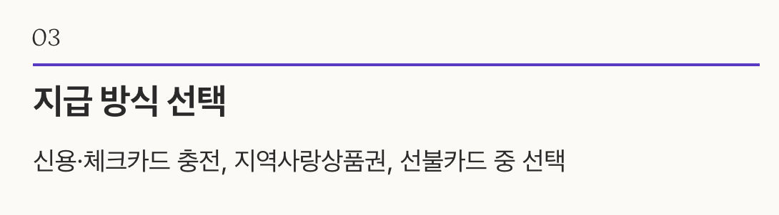신용·체크카드 충전, 지역사랑상품권, 선불카드 중 선택이 가능하고,