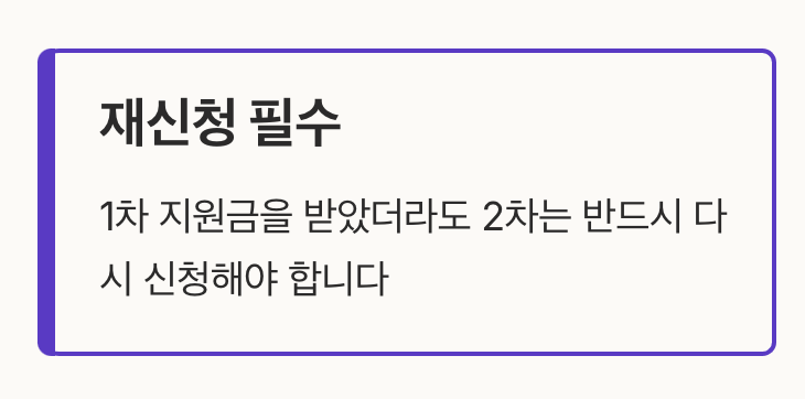 1차에서 지원금을 받았더라도 2차는 반드시 다시 신청해야 합니다.