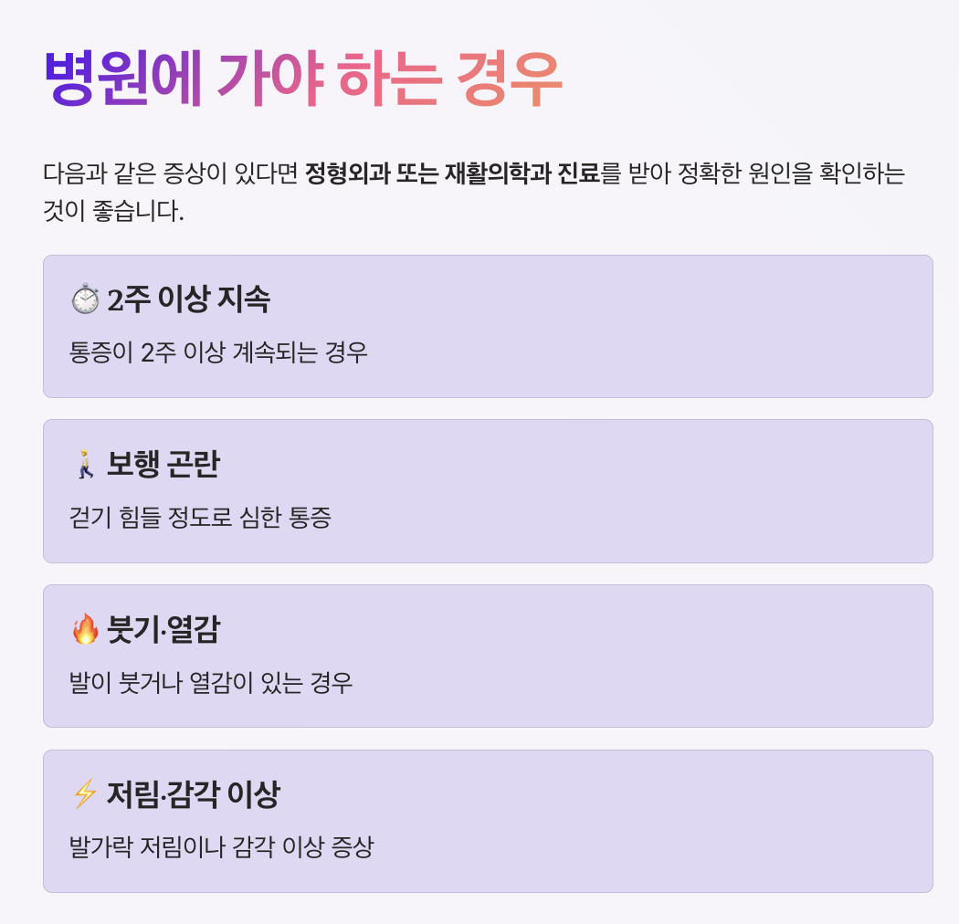 발바닥 통증은 단순한 피로가 아니라 족저근막염, 지간신경종 등 다양한 원인으로 발생할 수 있습니다.