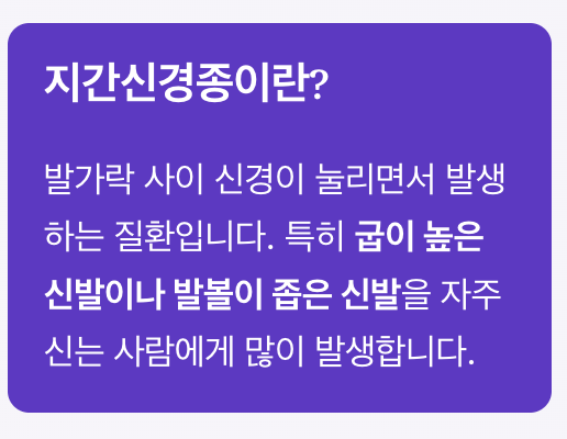 발가락 사이 신경이 눌리면서 발생하는 질환입니다.