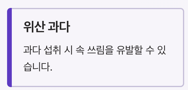 - 위산 과다로 속 쓰림 유발 가능