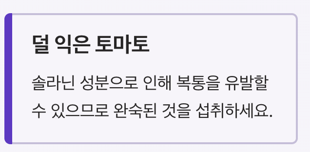 - 덜 익은 토마토는 솔라닌 성분으로 인해 복통 유발 가능