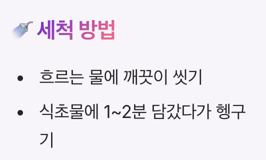 - 식초물에 1~2분 담갔다가 헹구기