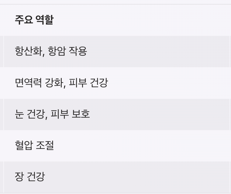 | 비타민 C | 면역력 강화, 피부 건강 | 감기 예방에 도움 |