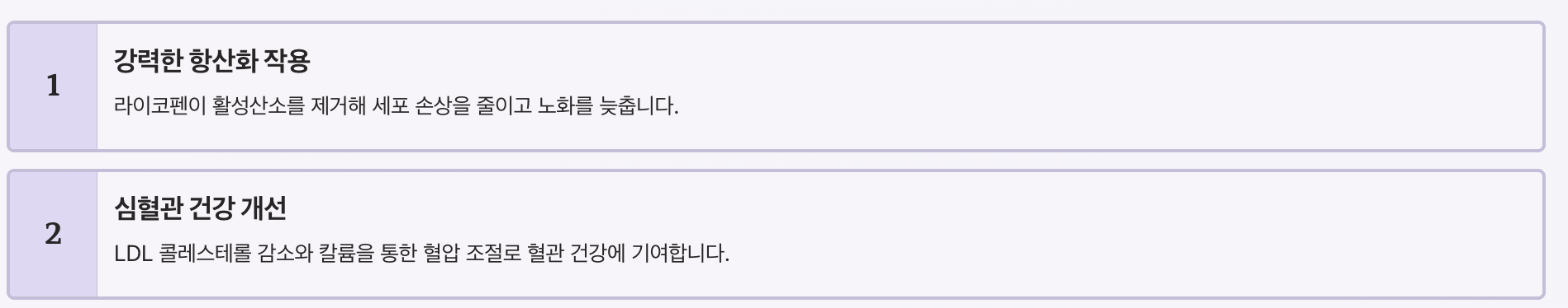 | 라이코펜 | 항산화, 항암 작용 | 붉은 색을 만드는 핵심 성분 |