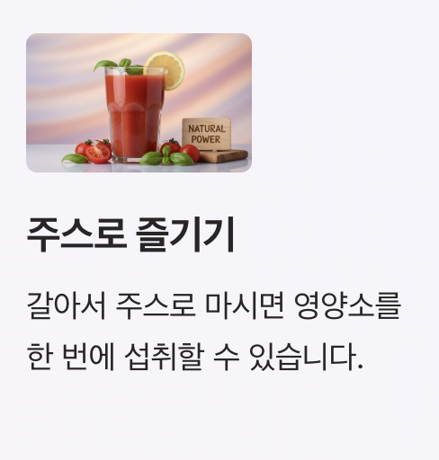 비타민 C와 라이코펜은 피부를 맑고 건강하게 유지하는 데 중요한 역할을 합니다. 자외선으로 인한 피부 손상을 줄이고 피부 탄력을 유지하는 데 도움을 줄 수 있습니다.