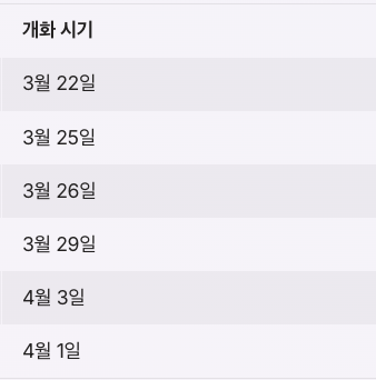| 서울 | 4월 3일 | 4월 10일 |