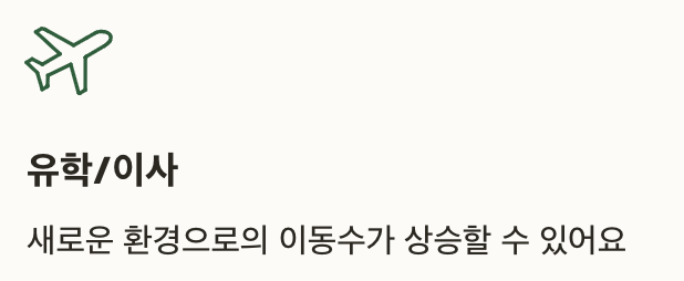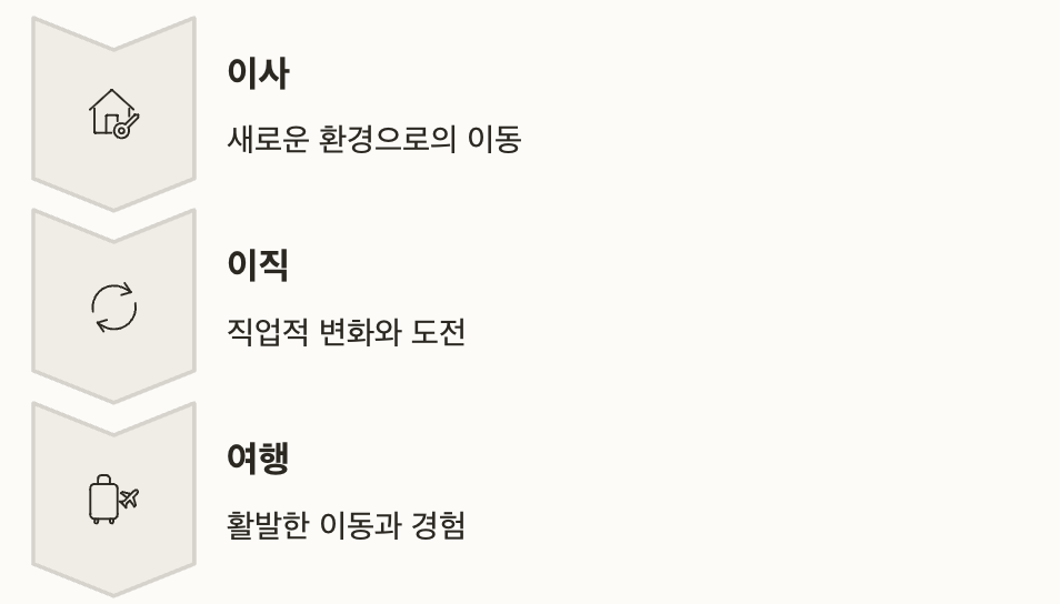 | 유학/이사 | 새로운 환경으로의 이동수 상승 |