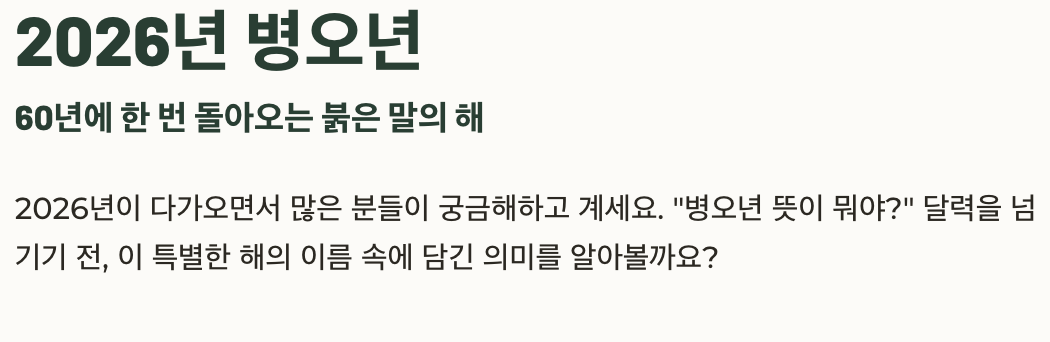 2026년이 다가오면서 “2026년은 무슨 해일까?”, “병오년 뜻이 뭐야?” 궁금해하시는 분들이 많아졌어요.