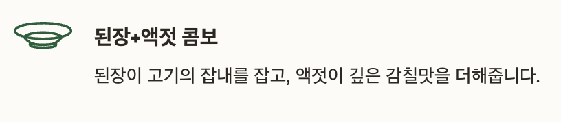 된장이 고기의 잡내를 잡고, 액젓이 깊은 감칠맛을 더해줍니다.