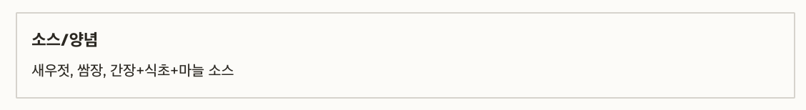 소스/양념 새우젓, 쌈장, 간장+식초+마늘 소스
